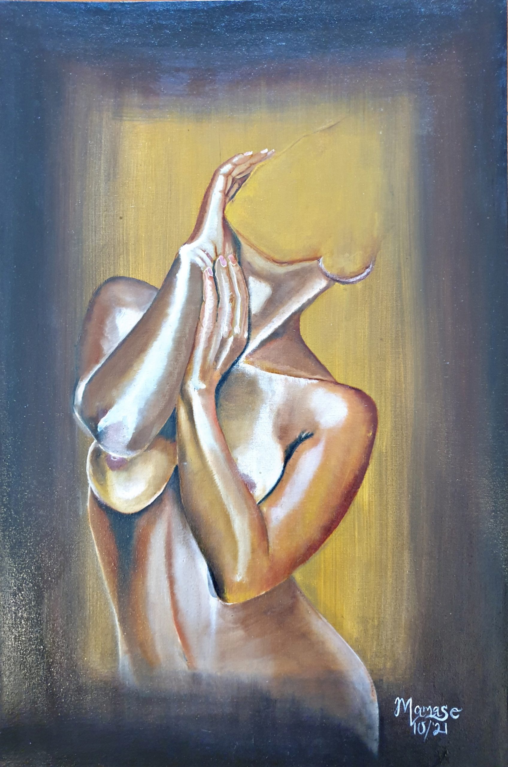 Goddess Oshun, commonly called the river orisha, in the Yoruba religion. She is associated with water, purity, fertility, love, and sensuality. Considered one of the most powerful of all orishas, she possesses human attributes such as vanity, jealousy, and spite.